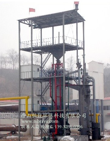 雙段煤氣發(fā)生爐自上而下由干餾段和氣化段組成,首先煤從爐頂煤倉經(jīng)兩段下煤閥進(jìn)入爐體,煤在干餾段經(jīng)過充分的干燥和長時間的低溫干餾,逐漸形成半焦,進(jìn)入氣化段,熾熱的半焦在氣化段與爐底鼓入的氣化劑充分反應(yīng),經(jīng)過爐內(nèi)還原層,氧化層而形成灰渣,由爐柵驅(qū)動從灰盆自動排出。煤在低溫干餾的過程中,以揮發(fā)分析出為主生成的煤氣稱為干餾煤氣,組成兩段爐的頂部煤氣,約占總煤氣量的40%,其熱值較高(6700KJ/nm3)溫度較低(120°C),并含有大量的焦油。這種焦油為低溫干餾產(chǎn)物,其流動性較好,可采用靜電除塵器捕集起來,作為化工原料和燃料。在氣化段,熾熱的半焦和氣化及經(jīng)過還原,氧化等一系列化學(xué)反應(yīng)生成的煤氣,稱為氣化煤氣。組成雙段煤氣發(fā)生爐的底部煤氣,約占總煤氣量的60%,其熱值相對較低(6400KJ/nm2),溫度較高(450°℃左右)因煤在干餾段低溫干餾時間充足,進(jìn)入氣化段的煤已變成半焦,因此生成的氣化煤氣不含焦油,又因距爐柵灰層較近,所以含有少量飛灰。底部煤氣就可經(jīng)旋風(fēng)除塵器及風(fēng)冷器等設(shè)備來處理,這樣對于使用冷靜化煤氣的用戶,便可不采用水洗法就能使用上冷靜化煤氣,從而避免了大量酚水無法處理的缺陷。